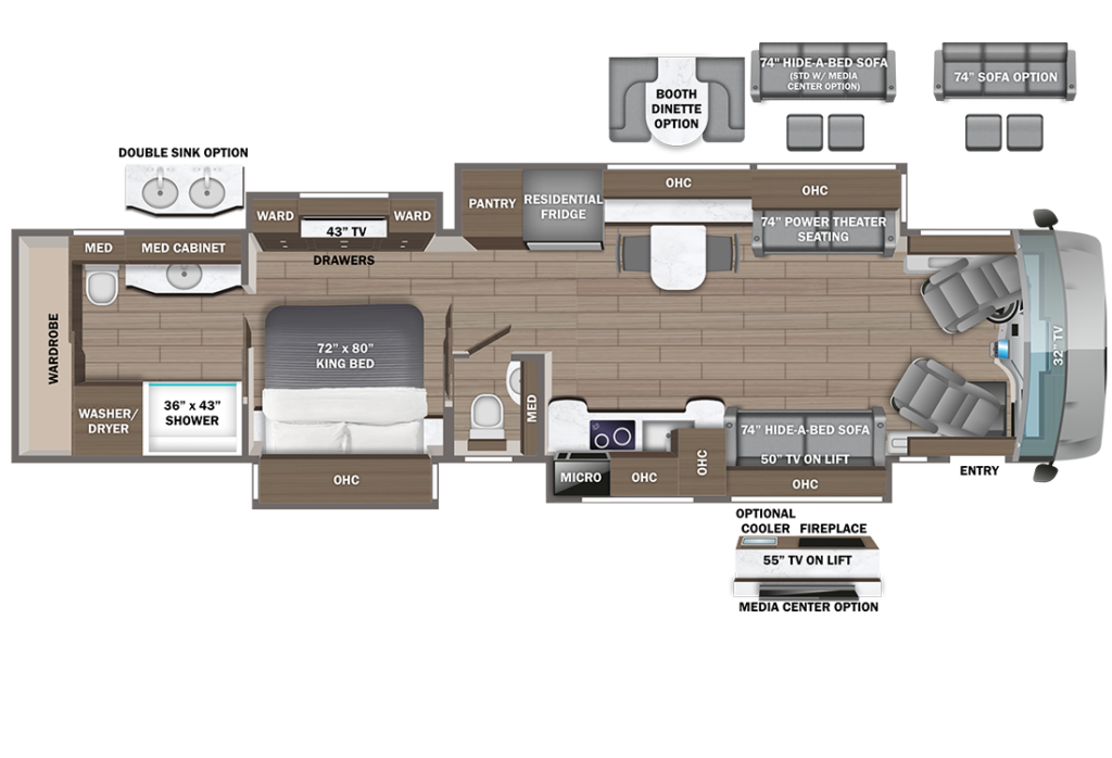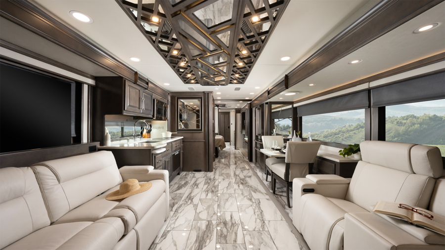 O Entegra Coach Cornerstone representa o auge do luxo em motorhomes, construído sobre um chassi Spartan K3 com motor Cummins X Diesel de seiscentos e cinco cavalos de potência, entregando um torque de mil novecentos e cinquenta libras-pé. Essa configuração assegura uma dirigibilidade suave e segura, com sistemas como o OnGuard Collision Mitigation e freios a disco em todas as rodas, reduzindo riscos em estradas movimentadas e otimizando a eficiência energética em até vinte por cento graças à aerodinâmica refinada e suspensão adaptativa que melhora a estabilidade em terrenos irregulares. O interior é um palácio sobre rodas, com comprimento de quarenta e cinco pés, incluindo móveis em couro italiano, piso aquecido de porcelanato e um banheiro traseiro com chuveiro de quarenta por trinta e dois polegadas, integrando-se perfeitamente à vida cotidiana de famílias ou profissionais remotos por meio de espaços adaptáveis como escritório com tomadas USB de alta velocidade e conectividade Wi-Fi integrada. Imagine preparar refeições na cozinha completa com geladeira residencial e forno de convecção, enquanto o veículo gerencia energia autonomamente via painéis solares opcionais, permitindo viagens off-grid por até dez dias sem conexões externas. Recursos funcionais incluem três condicionadores de ar de quinze mil BTUs, aquecimento hidrônico e um sistema de entretenimento Bose com TV LED Samsung de cinquenta polegadas, promovendo eficiência ao reduzir custos operacionais e emissões de carbono. Avaliações de usuários destacam a qualidade impecável, com atenção a detalhes como armazenamento inteligente e isolamento acústico superior, tornando-o ideal para escapadas prolongadas sem sacrificar conforto. Com capacidade para até oito pessoas e tanques de água de grande volume, o Cornerstone impacta o público ao oferecer uma experiência de moradia móvel sustentável, alinhando aventura com demandas diárias como trabalho remoto ou lazer familiar.